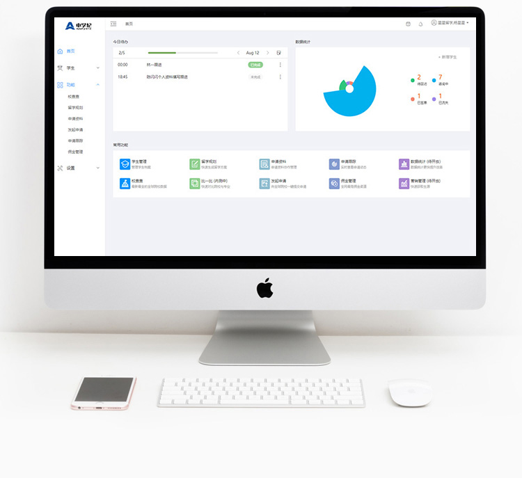 学生信息管理,在线同步申请信息;无忧管理,工作轻松高效、提高签单率。
